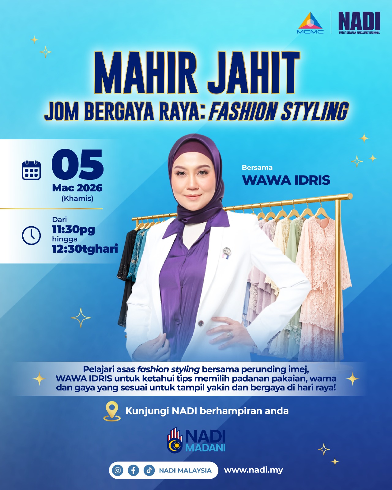 Ingin tingkatkan keyakinan diri dan tampil lebih menyerlah menjelang Syawal? Sertai sesi bersama Wawa Idris, Certified Image Consultant, dan pelajari asas fashion styling serta padanan yang tepat.
